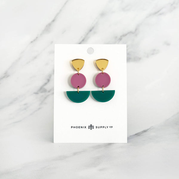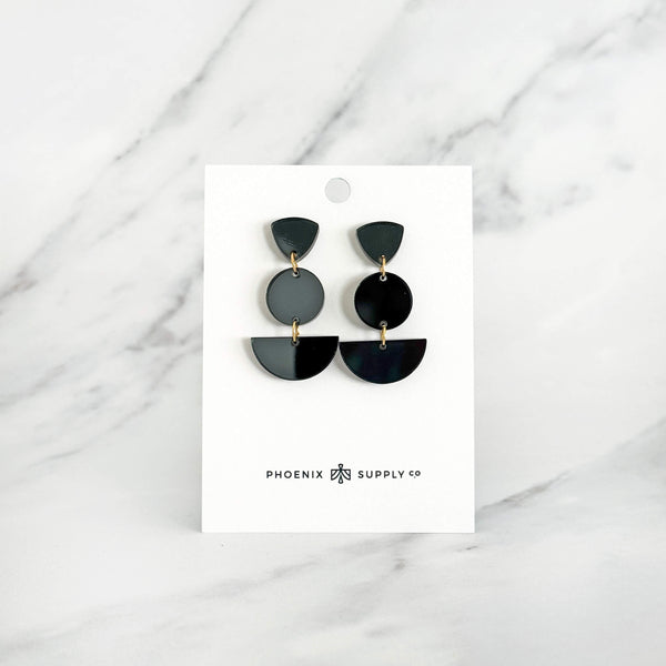 Balance your style with our Cairn drop earrings, inspired by stacked stone cairns and sleek geometric design. Made with lightweight acrylic and finished with gold-tone details, these earrings add a modern, sculptural touch to any outfit. Available in four versatile colorways, they’re the perfect blend of playful and sophisticated.